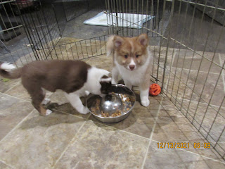 Kappu has left and is enjoying his new home on the west coast. The two remaining puppies, ABBA and Watson, have been practicing their "Sits", "Downs", "Comes", "Watch Mes" and "Sit-Stays". However, they are still very young and everything is still very new for them. Watson is available to the right home.